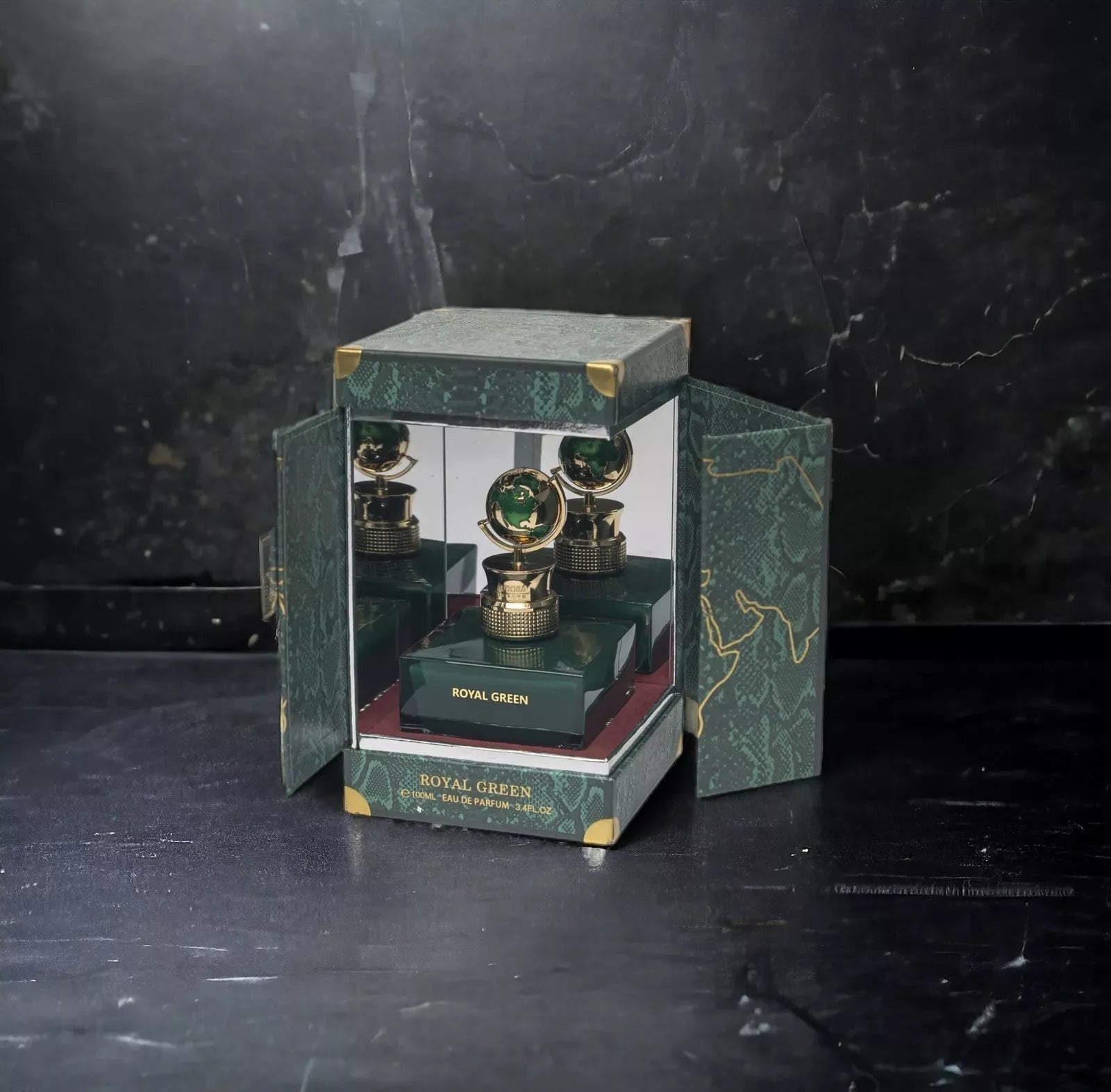 Upon first spray, Royal Green envelops your senses in a luxurious aroma that transports you to an opulent world. The top notes of rose, and saffron are perfectly balanced with the heart notes of musk, iris, and ylang-ylang, creating a tantalizing blend that leaves a lasting impression. The base notes of cedar, agarwood, sandalwood, and ambergris create a sensual and alluring finish that stays on the skin, leaving you feeling confident and irresistible.