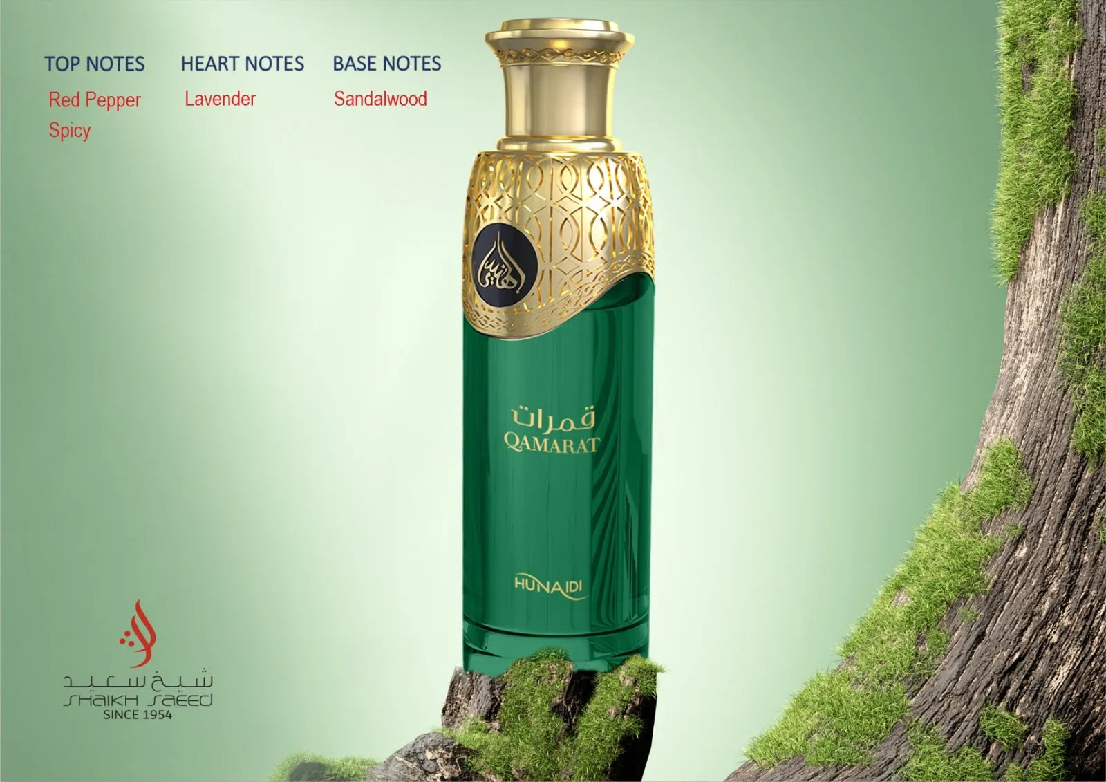 Hunaidi Qamarat - 200ml is a luxurious fragrance with a captivating blend of sandalwood, lavender, red pepper, and spicy notes. Indulge in its long-lasting scent and experience the perfect balance of warm and aromatic tones. Elevate your senses with this exquisite perfume.