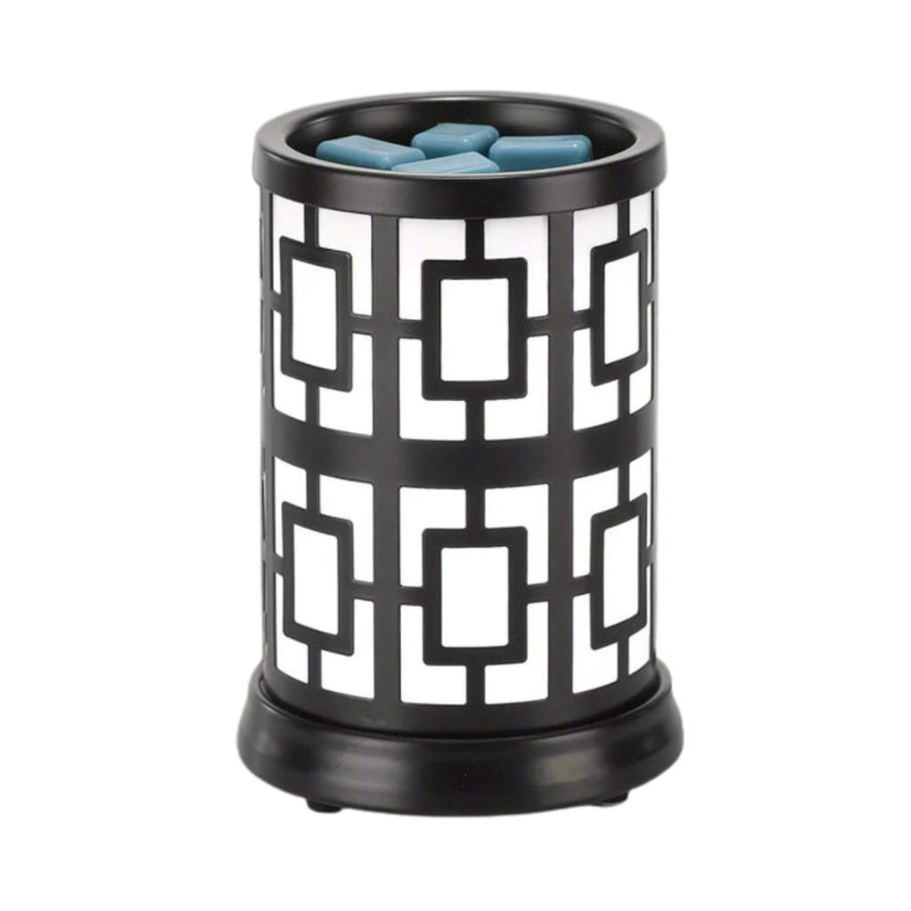 Boasting a cute geometric pattern in black metal, this warmer can brighten and fragrance any room. Works great when paired with our Fragrance Gels.
